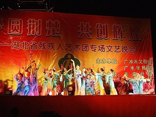 本网讯 为宣传我省残疾人事业近年来取得的新成果,进一步弘扬人道主义精神,宣扬社会主义核心价值体系,展示残疾人特殊艺术的魅力,唤起全社会对残疾人事业的关心、理解和支持。6月17日,省残疾人艺术团来我市奉献了一台以“梦圆荆楚,共创辉煌”为主题的大型文艺晚会。该团曾在国内外演出过数百场,先后受到江泽民、胡锦涛等中央领导的亲切接见,获得国内外各界人士的广泛赞誉。